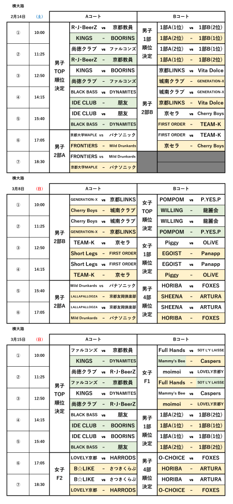 ※第2.8版改定箇所:男子4部A・Bの順位が確定したため、1/24(土)以降の順位決定戦の日程を更新しました。