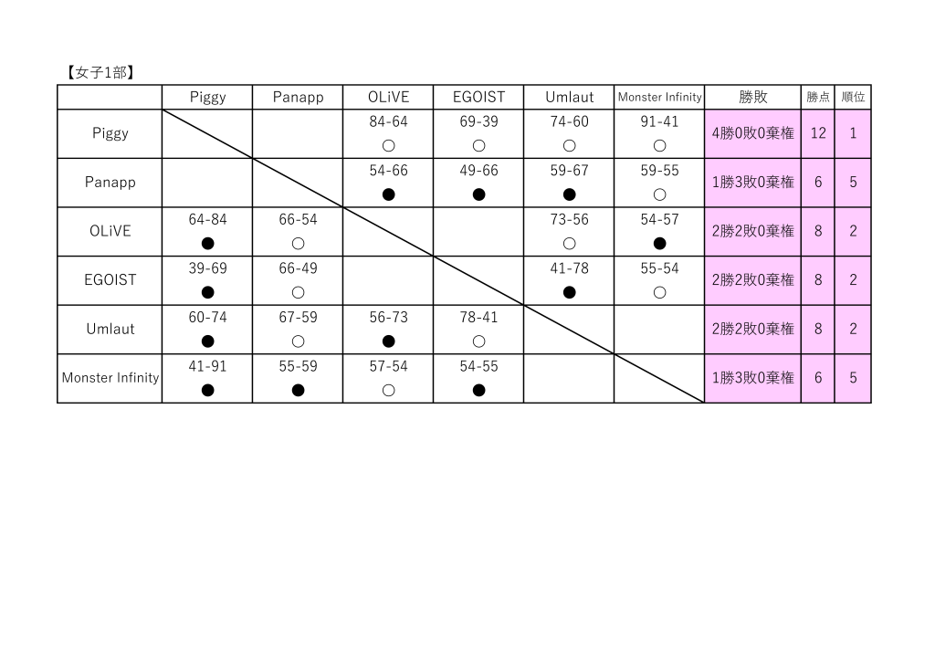 下位リーグ:EGOIST、Panapp、Monster Infinity