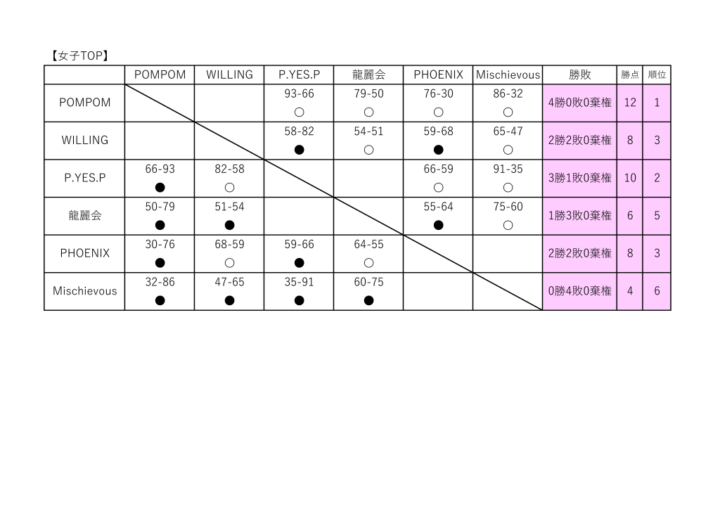 上位リーグ:POMPOM、P.YES.P、PHOENIX