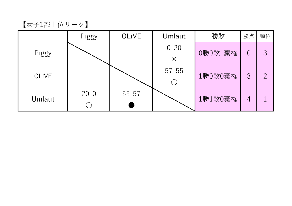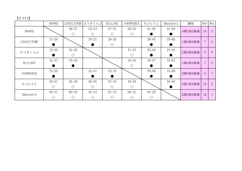 女子2部 最終結果