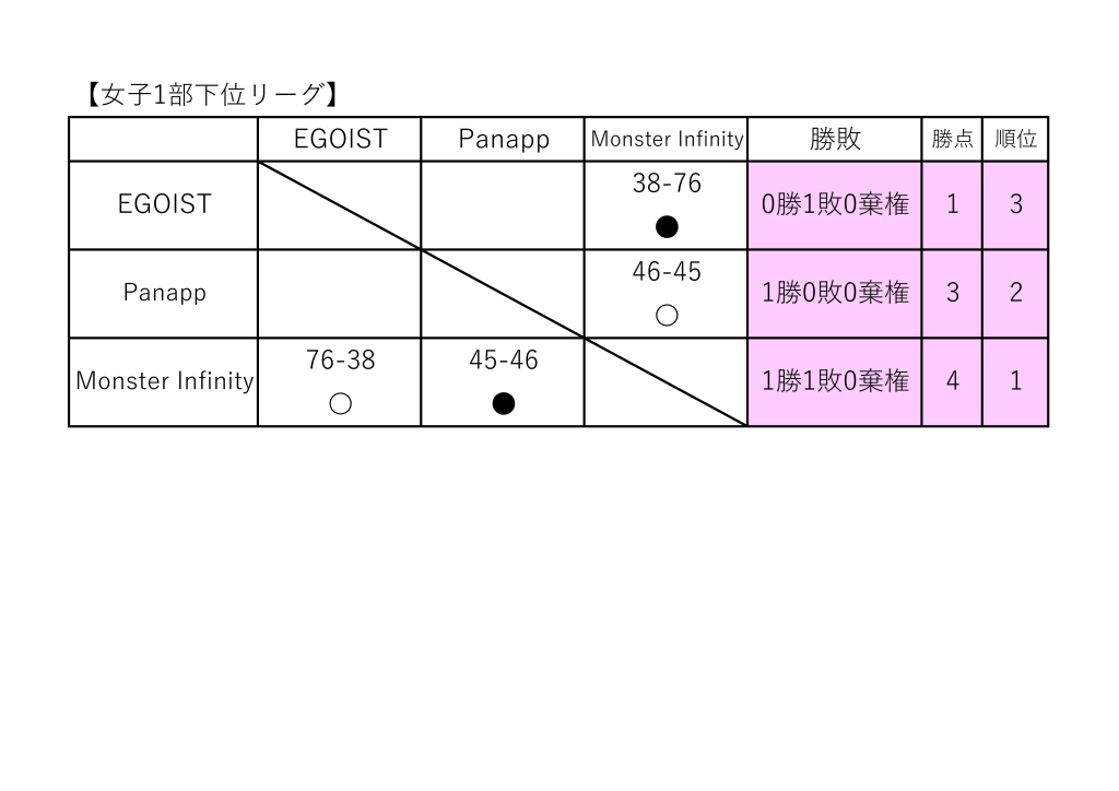 女子1部 4-6位決定戦