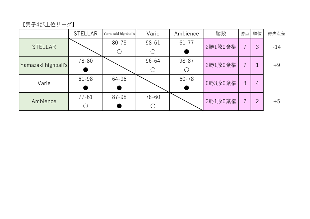 男子4部1-4位決定戦